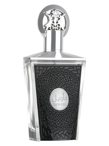 Ta'weel de Lattafa Perfumes es una fragancia de la familia olfativa para Hombres y Mujeres. Esta fragrancia es nueva. Ta'weel se lanzó en 2023. Las Notas de Salida son jengibre, bergamota, enebro de Virginia y nuez moscada; las Notas de Corazón son lavanda y flor de azahar del naranjo; las Notas de Fondo son ambroxan, vetiver, cuero y pachulí.